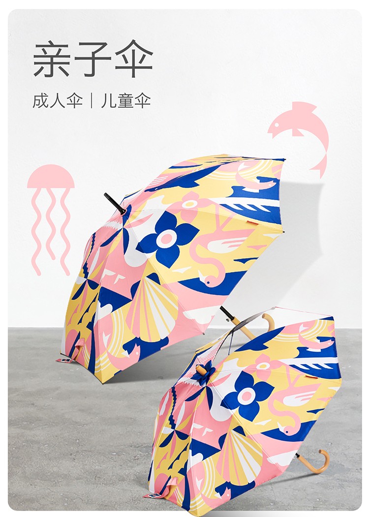 家庭款亲子装雨伞成人款原创印花直骨伞