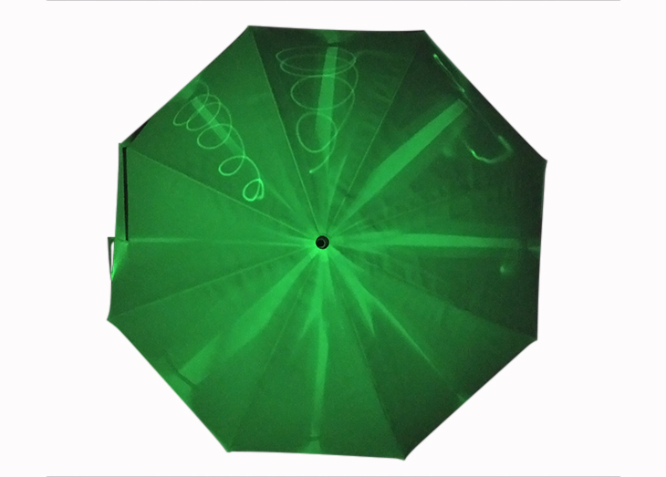 新颖的设计,伞面使用新材料荧光布,在光源下是柔和的浅荧光绿,